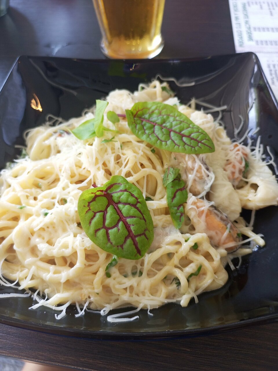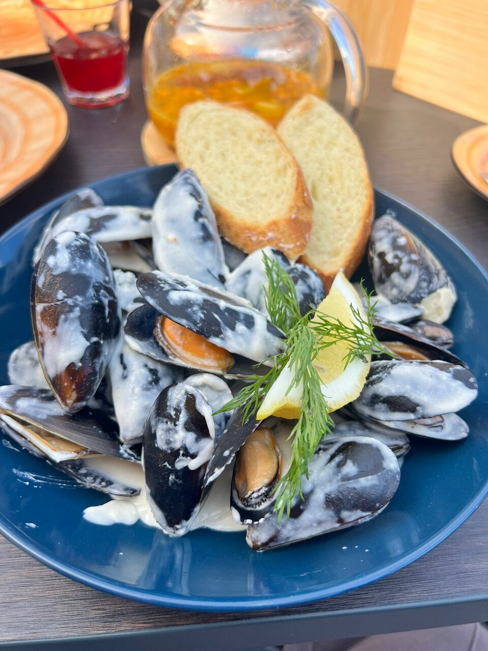 Очень понравилось здесь. Заказывали мидии в сливочном соусе. Оочень вкусные!