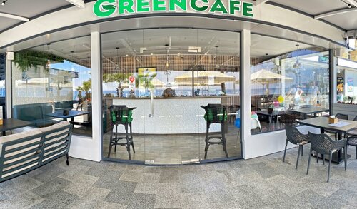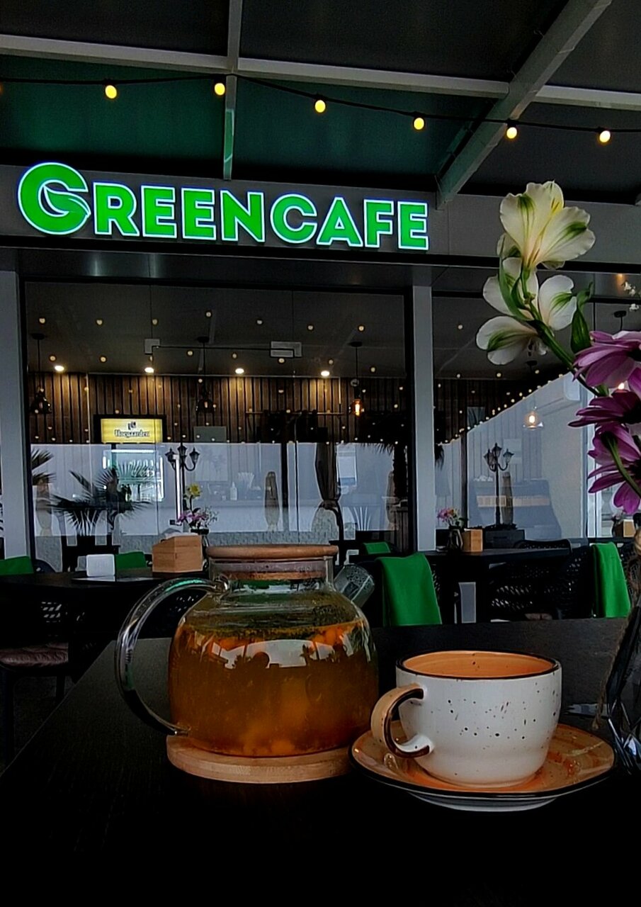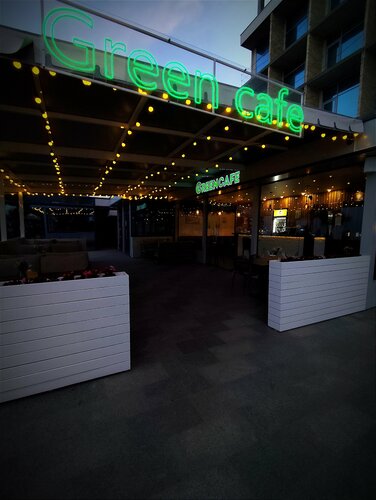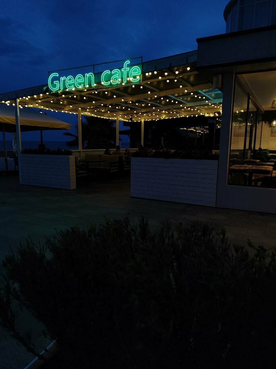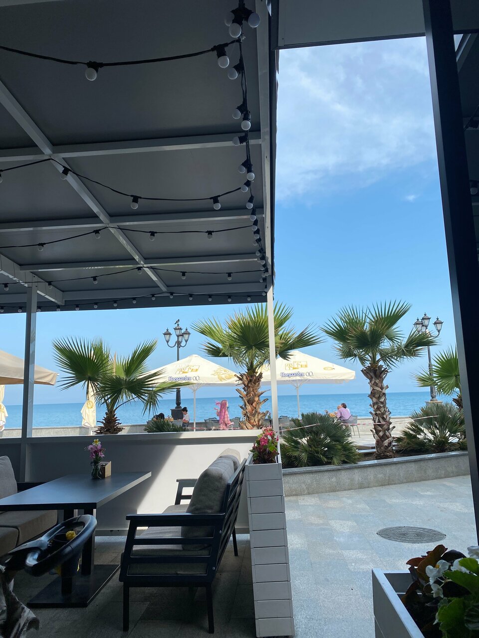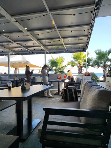 Хорошее кафе, небольшое, уютное. Столики на улице с видом на море и пальмы)